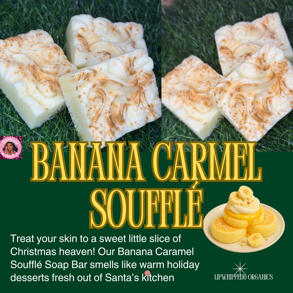 Treat your skin to a sweet little slice of Christmas heaven! Our Banana Caramel Soufflé Soap Bar smells like warm holiday desserts fresh out of Santa’s kitchen, Smell Like a sexy fresh and sweet dessert all over the body. Safe and gentle enough for all areas of the body, even the intimate areas. Infused with vitamin E and C oils, that will lighten up a dull complexion this winter.