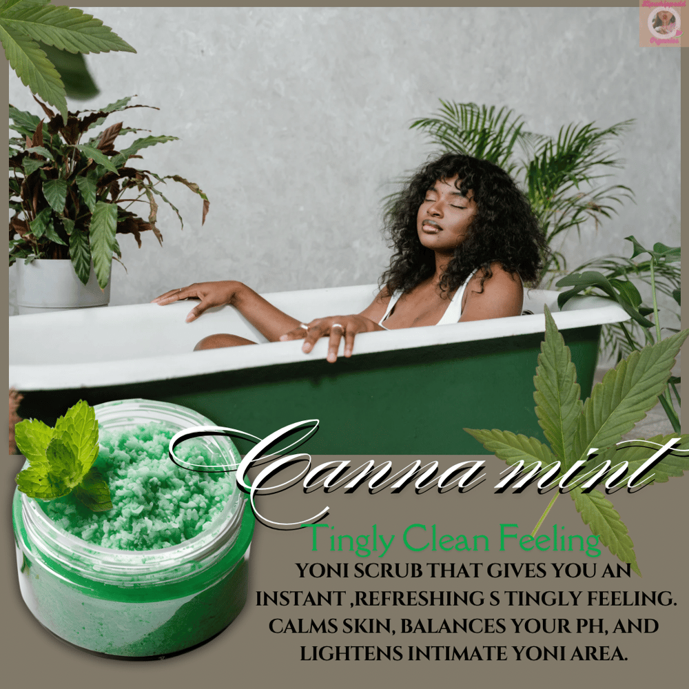 Give your yoni that tingly clean feeling with out canna mint yoni scrub. Infused with our slow boiled canna oil, mixed in with our Lipwhippedd Yoni oil, this will be sure to give your body a nice relaxing feeling, and helps diminish any pain or bloating. Our canna oil is very potent, but also gives your body exactly what it needs. This scrub is perfect for balancing your PH and gives off an amazing soft exfoliant perfect for before and after shaving or waxing.