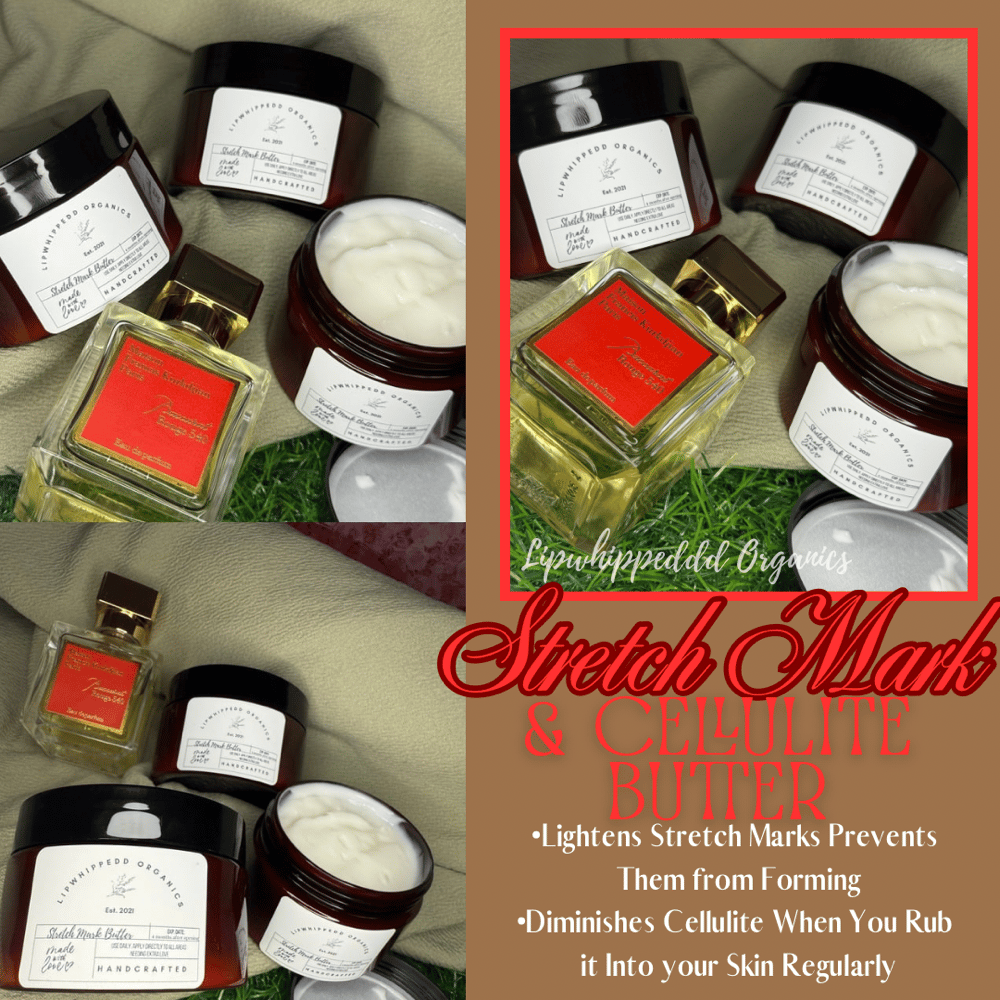 Super hydrating intensive cocoa butter base specially created for even the deepest stretch marks. I whipped in the LipWhippedd Cellulite & stretch mark oil making it even stronger at soothing & smoothing away stretch marks. Safe for pregnant babes & those who have fluctuating weight causing stretch marks.
